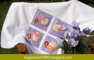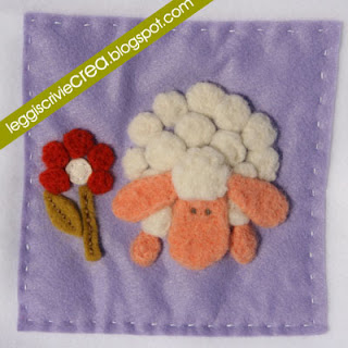 Ispirata dal libro di Rosamunda Imoti “Lana Cardata”– che consiglio caldamente perchè propone progetti semplici ma di gran gusto con la lana infeltrita ad ago – mi sono tuffata nella creazione di una copertina in morbido pile bianco con pecorelle.