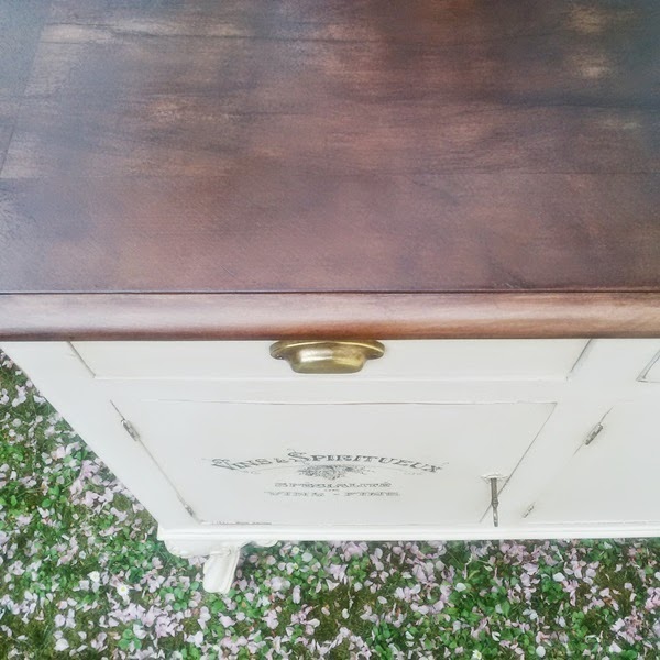 Il top che ho amorevolmente scartavetrato e riportato a nuovo con un mordente color cioccolato: