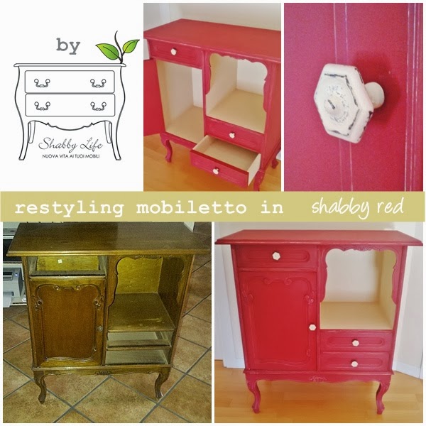 Stavolta un triste mobiletto in legno di una tinta non ben identificata si veste di rosso e crema.
